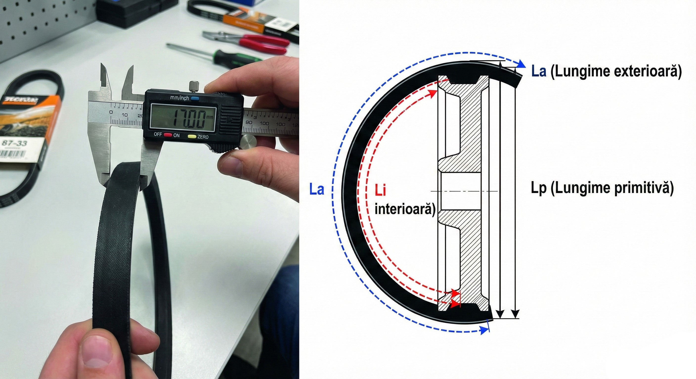 O curea ruptă înseamnă utilaje oprite. Învață să identifici semnele ascunse de uzură înainte de avarie și descoperă cum măsori corect o curea (diferența critică dintre Li și La) pentru a comanda piesa potrivită din prima. Ghid complet pentru profesioniști.